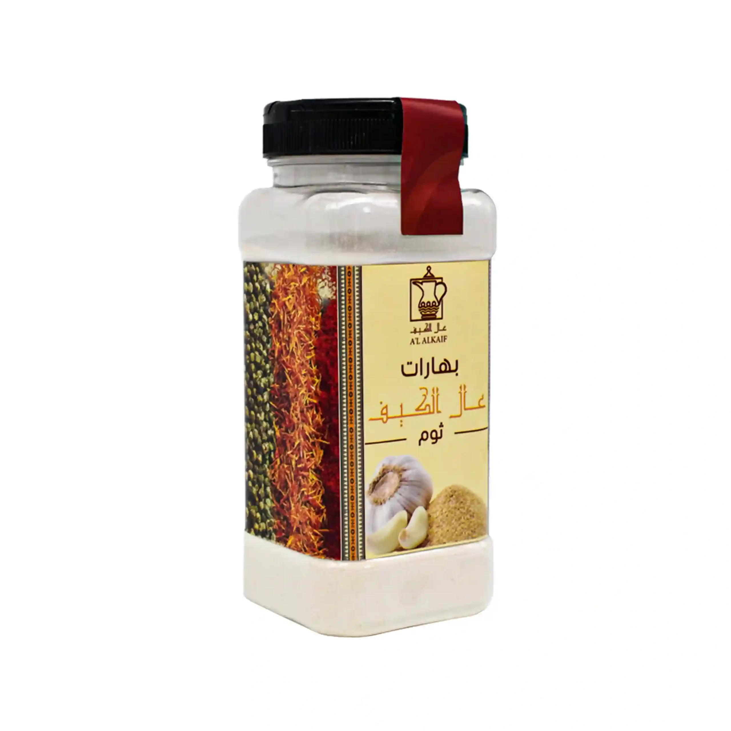 هو منتج طبيعي يتميز بنكهة الثوم الغنية والقوية. تتميز هذه البودرة بالنعومة والقوام الخفيف، مما يجعلها سهلة الاستخدام في تحضير مجموعة متنوعة من الأطباق.