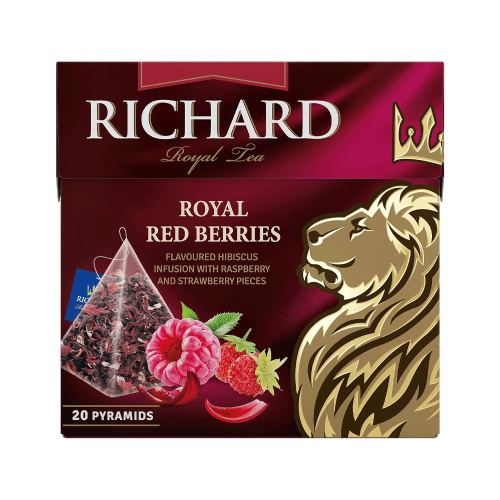 شاي “ريتشارد رويال أعشاب التوت الأحمر” (Richard Royal Red Berries) هو مشروب أعشاب منعش وخالٍ من الكافيين، يتميز بنكهة الفواكه الصيفية اللذيذة. يقدم هذا الشاي مزيجاً فاتحاً وشهياً مستوحى من وصفات الشاي الملكية الإنجليزية، حيث يجمع بين المكونات العشبية والفاكهية لتوفير تجربة مشروب ممتعة ومناسبة لكل الأوقات.