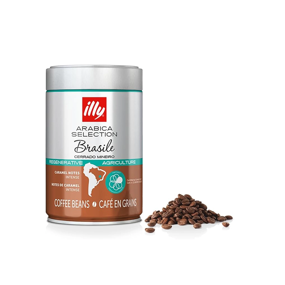 قهوة ايلي حبوب محمصة برازيلية، 250 جرام، هي قهوة فاخرة من أرابيكا 100%، تتميز بتحميص متوسط يبرز نكهات الشوكولاتة والمكسرات مع حلاوة طبيعية.