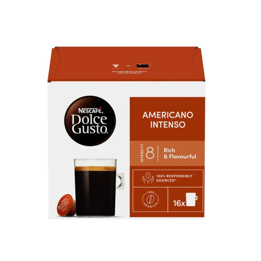 استمتع بتجربة قهوة غنية وقوية مع كبسولات نسكافيه دولتشي غوستو أمريكانو إنتنسو، المتوفرة في عبوة تحتوي على 16 كبسولة.