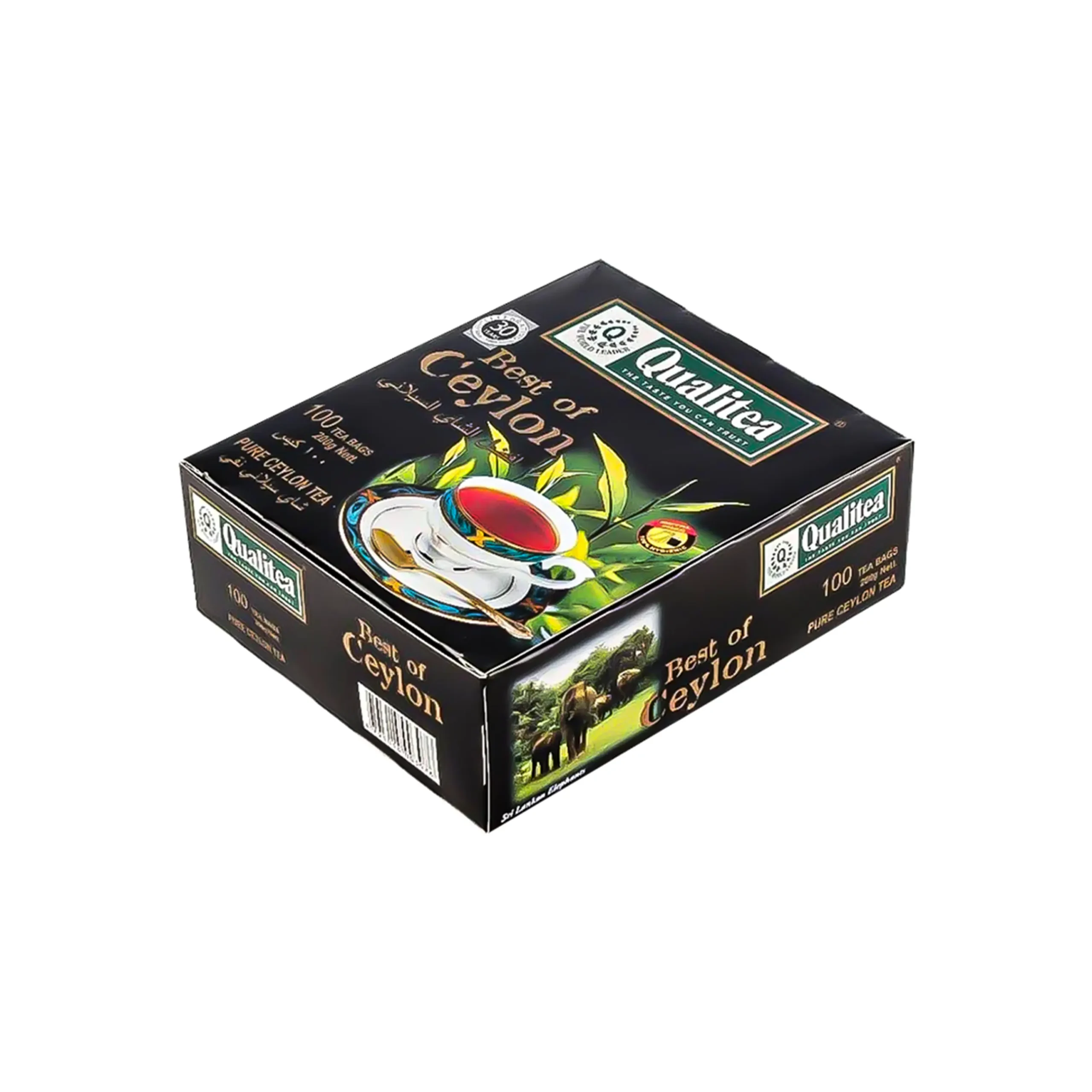 العلامة التجارية: كوالتي اسم المنتج: شاي كوالتي اسود ظروف 100 كيس نوع الشاي: اسود ظروف تغليف المنتج: علبة كرتون التعبئة والمنشأ: سيرلانكا الوزن الصافي: 200 جرام